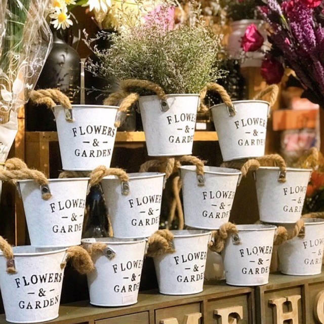 Nhà cửa & Đời sống > Dụng cụ chăm sóc nhà cửa > Chậu, xô & gáo nước || XÔ THIẾC CĂM HOA FLOWERS & GARDEN (14-15cm)Còn hàng