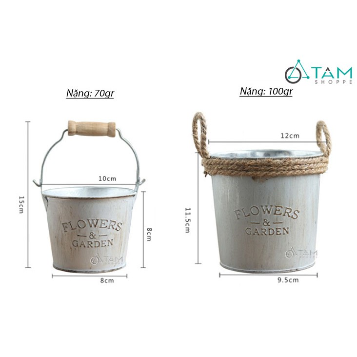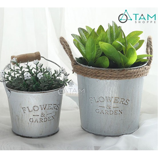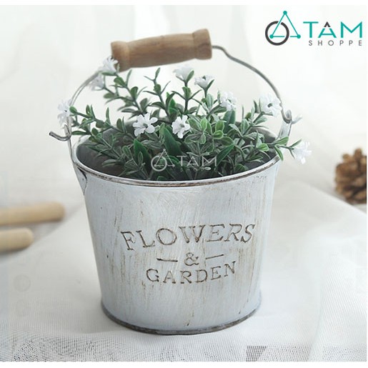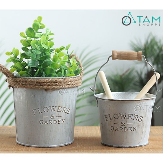 Nhà cửa & Đời sống > Dụng cụ chăm sóc nhà cửa > Chậu, xô & gáo nước || Xô thiếc Vintage Flower Garden có quai FE-XTH-02Còn hàng