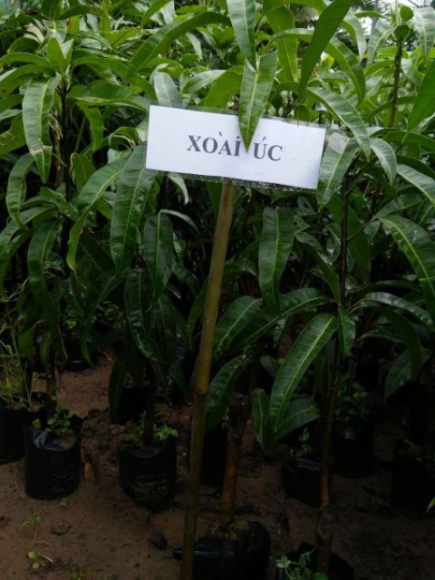 Cây xoài giống úc cao 80cm, cây rất dễ trồng, dễ chăm, năng suất cao, quả to đạt từ 0,8kg - 1,3kg /quả. Quả màu xanh pha hồng đỏ, khi chín màu vàng tươi đẹp mắt, thịt xoài vàng, chắc ngon, ít xơ, mùi thơm và hạt rất nhỏ.Trồng cây xoài cung cấp trái ngon, sạch cho gia đình, bổ sung thêm nhiều dưỡng chất cho cơ thể.