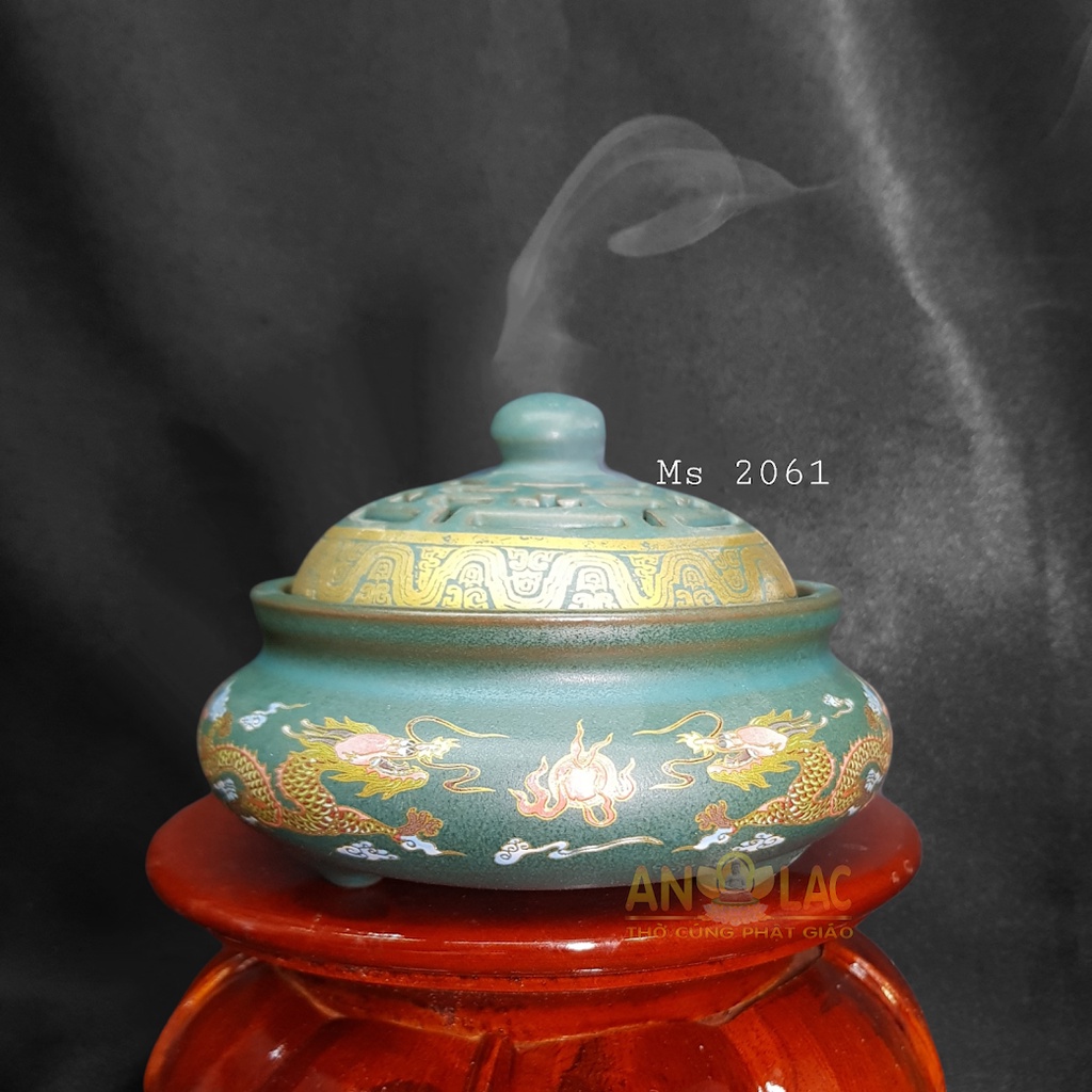 Thố Sứ Xông Trầm Hương.- Màu Sắc : Xanh lục