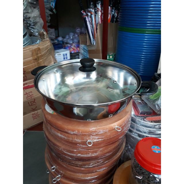 Nhà cửa & Đời sống > Dụng cụ nhà bếp > Nồi || Xoong ăn lẩu❤️ nồi ăn lẩu vung kính sz 28cm inox sáng bóng - Smart HouseCòn hàng