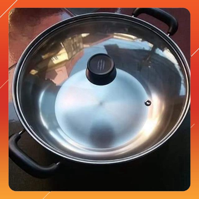 Xoong ăn lẩu❤️ nồi ăn lẩu vung kính sz 28cm inox sáng bóng - Smart House