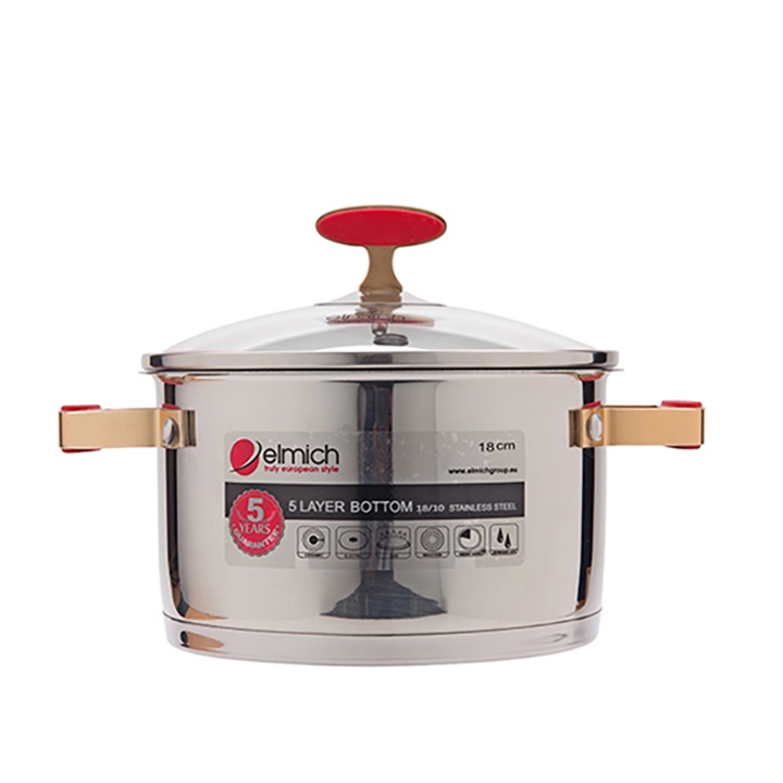 Giới thiệu Xoong inox 304 cấu tạo 5 lớp đáy Elmich Red Velvet 20cm xuất xứ CH Séc