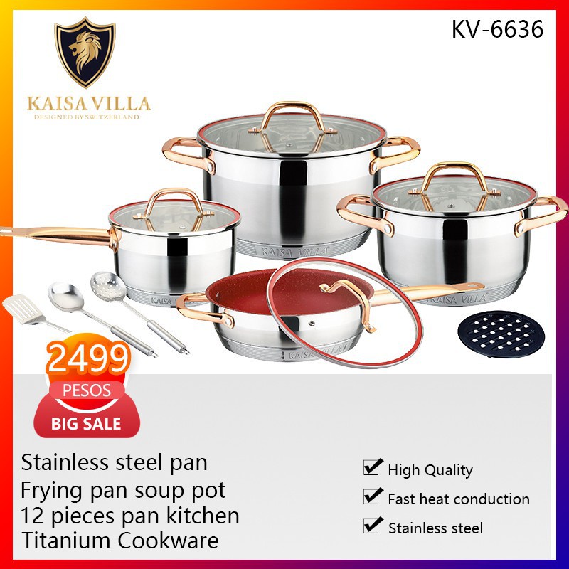 Nhà cửa & Đời sống > Dụng cụ nhà bếp > Nồi || Bộ xoong nồi chảo inox chống dính 9 đáy 12 chi tiết nhập khẩu cao cấp. Bộ nồi inox cho bếp từ Kaisa Villa model KV-6636Còn hàng