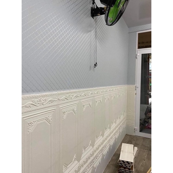 Mẫu xốp dán tường hoa văn- xốp dán chân tường - lamri dán tường mới này tuyệt đẹp, nhìn sang trọng vô cùng.Kích thước tấm 90cm x 70 cm