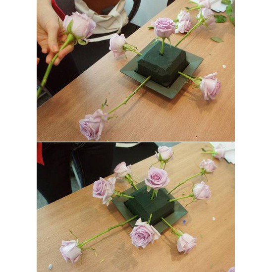 👉Dùng cắm hoa tươi : ngâm xốp vào nước đến khi miếng xốp hút no nước rồi mới cắm=>> cung cấp nước , giúp hoa tươi lâu hơn.