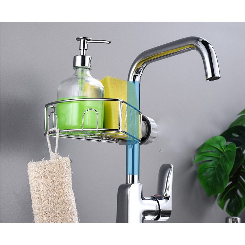 Giá inox đựng lưới rửa bát,cọ xoong,xà bông treo vòi nước bồn rửa bát tháo lắp nhanh