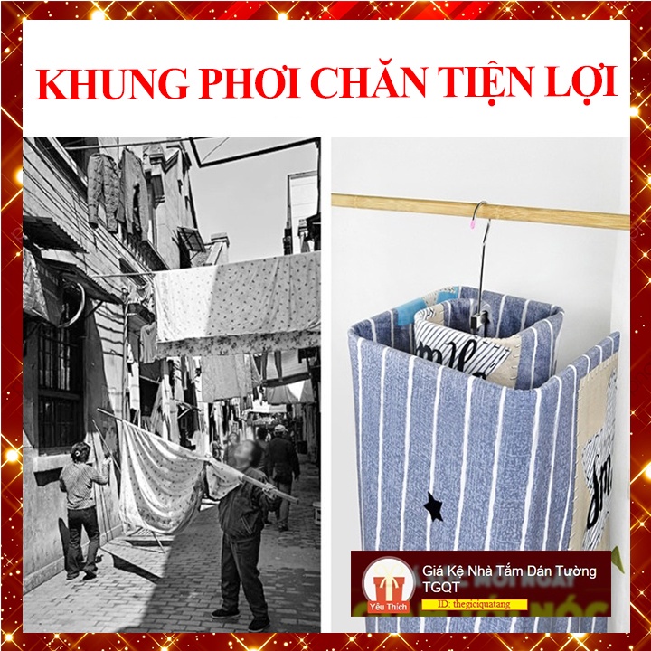 Giới thiệu (++Xu) Giá phơi chăn tiện lợi dạng khung vuông INOX tăng diện tích (TGQT)
