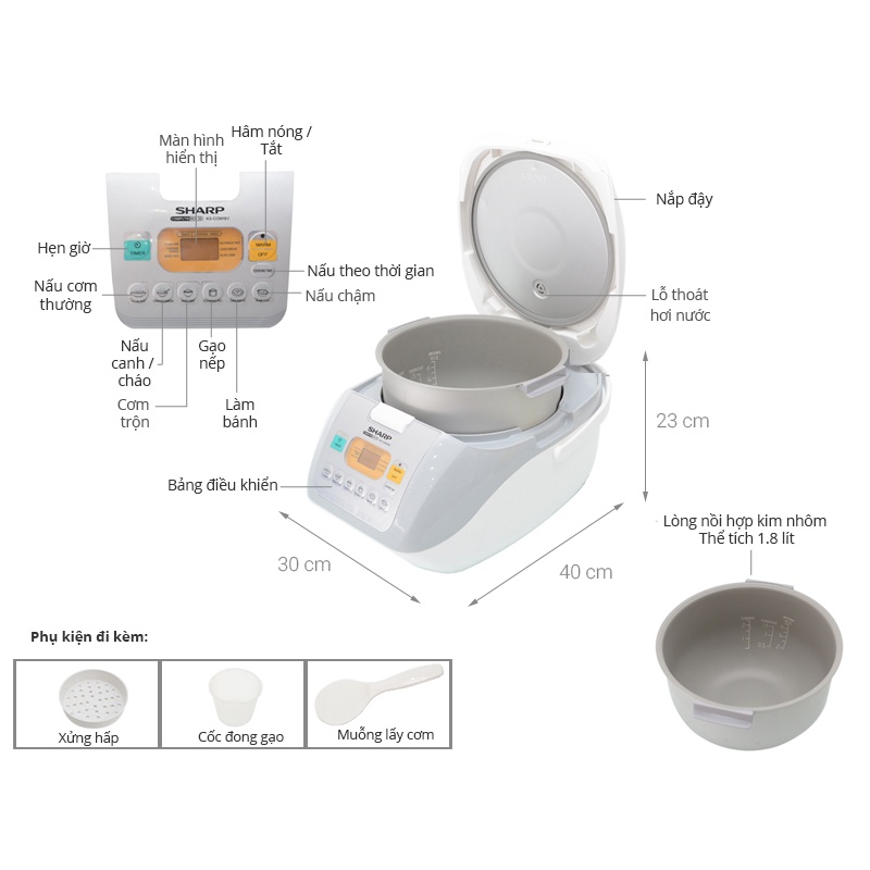 - Nồi cơm điện tử Sharp KS-COM18 giúp nấu cơm ngon hơn, dẻo thơm hơn