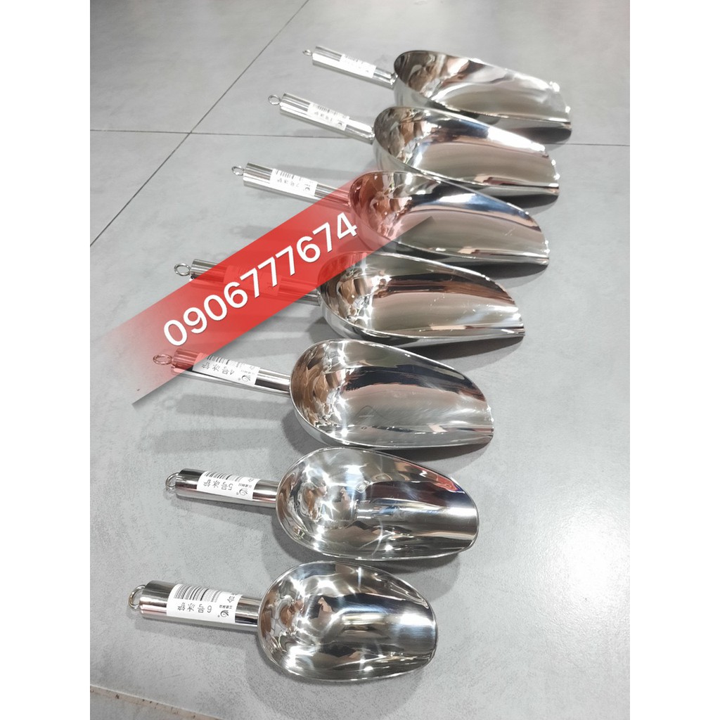 Nhà cửa & Đời sống > Dụng cụ nhà bếp > Cây vét bột & đồ gắp thức ăn || XÚC ĐÁ XÚC HẠT INOX LOẠI DÀY XỊN ĐỦ SIZECòn hàng