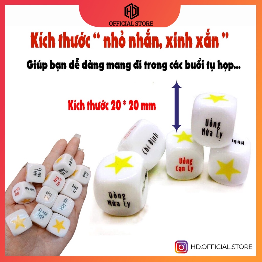 💡 Hình lập phương sáng bóng, mỗi mặt đều in chữ rõ ràng, lắc trúng mặt nào chính là "thử thách" dành cho mỗi người tham gia