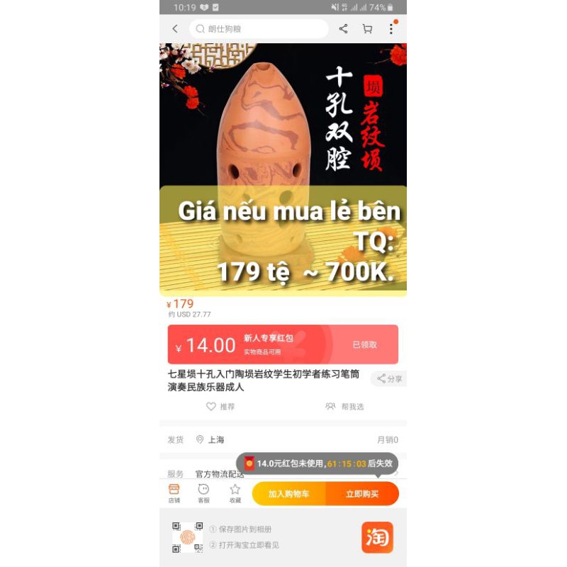 Sở thích & Sưu tầm > Nhạc Cụ & Phụ Kiện > Sáo, kèn || Xun đất 10 lỗ chuyên nghiệp huyên 10 lỗ- Xun Thất TinhCòn hàng