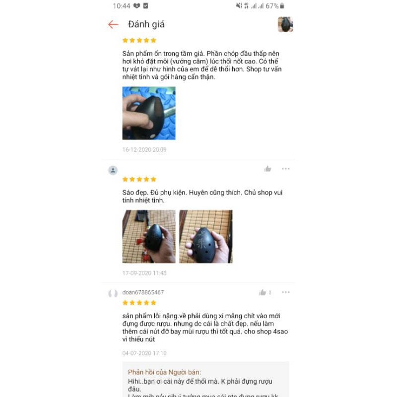 sản phẩm loại có vát miệng nên thổi rất dễ lên âmSản phẩm làm từ đất nung. Thổi những bản nhạc buồn.