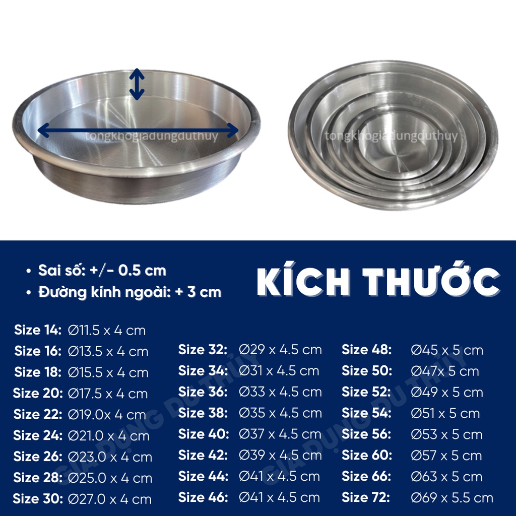 Giới thiệu Xửng bơ tròn đường kính 14 - 30 cm Tân Hòa Long, chất liệu nhôm nhẵn bóng an toàn cho sức khỏe của gia dụng Du Thủy