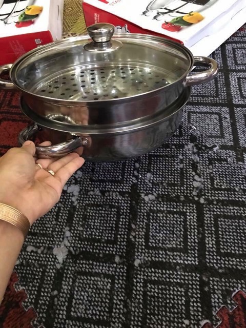 Nhà cửa & Đời sống > Dụng cụ nhà bếp > Nồi || Xửng hấp 2 tầng inox sz 28cm tiện dụngCòn hàng