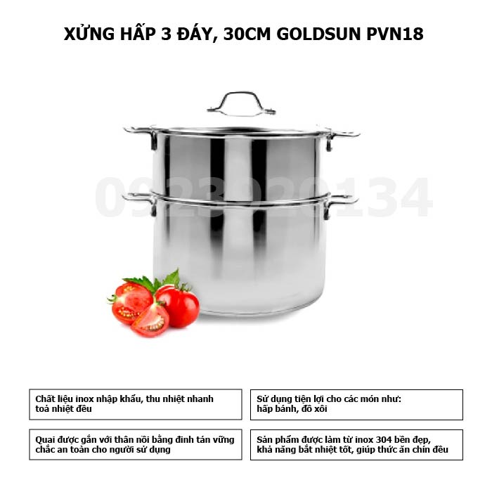 Giới thiệu Xửng hấp 3 đáy, 30cm Goldsun PVN18