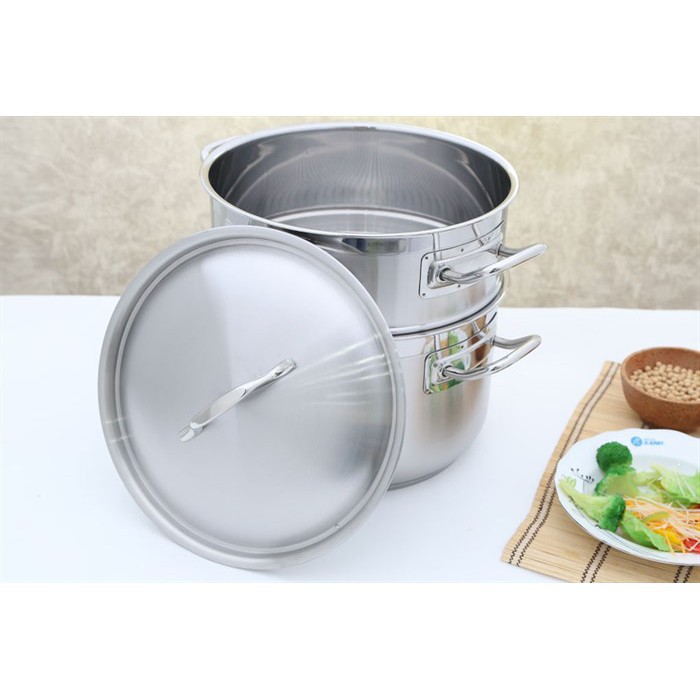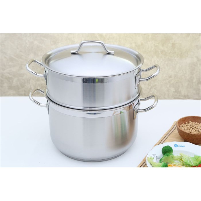 Nồi có đường kính 28 cm, dung tích nồi nấu dược 12 lít nước .dùng để luộc 2 con gà nguyên con khối lượng tầm 2 – 2.2 kg. Xửng hấp có đường kính 27.4 cm thuận tiện cho việc hấp nhiều món ăn.
