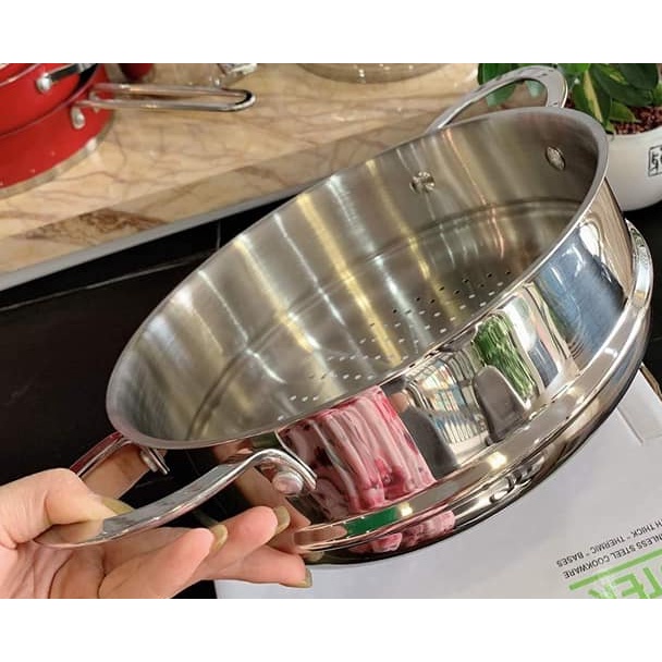 Dễ dàng làm nhiều món ăn, bề mặt sáng bóng không bám bẩn nên dễ dàng khi vệ sinh. Ngoài ra, xửng hấp bên trong có nhiều thoát hơi, vừa giúp hơi tỏa đều vừa giúp thực phẩm ráo nước, đảm bảo hương vị thơm ngon của món hấp. Đường kính 24cm đủ lớn, giúp bạn thoải mái làm các món hấp thơm ngon hạn chế tối đa việc thất thoát lượng vitamin và khoáng chất của thức ăn cho cả gia đình.