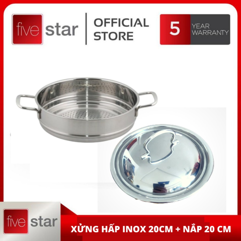 Xửng hấp inox 2 quai 20 cm kèm nắp inox dùng hấp cá, hấp xôi, hấp thit