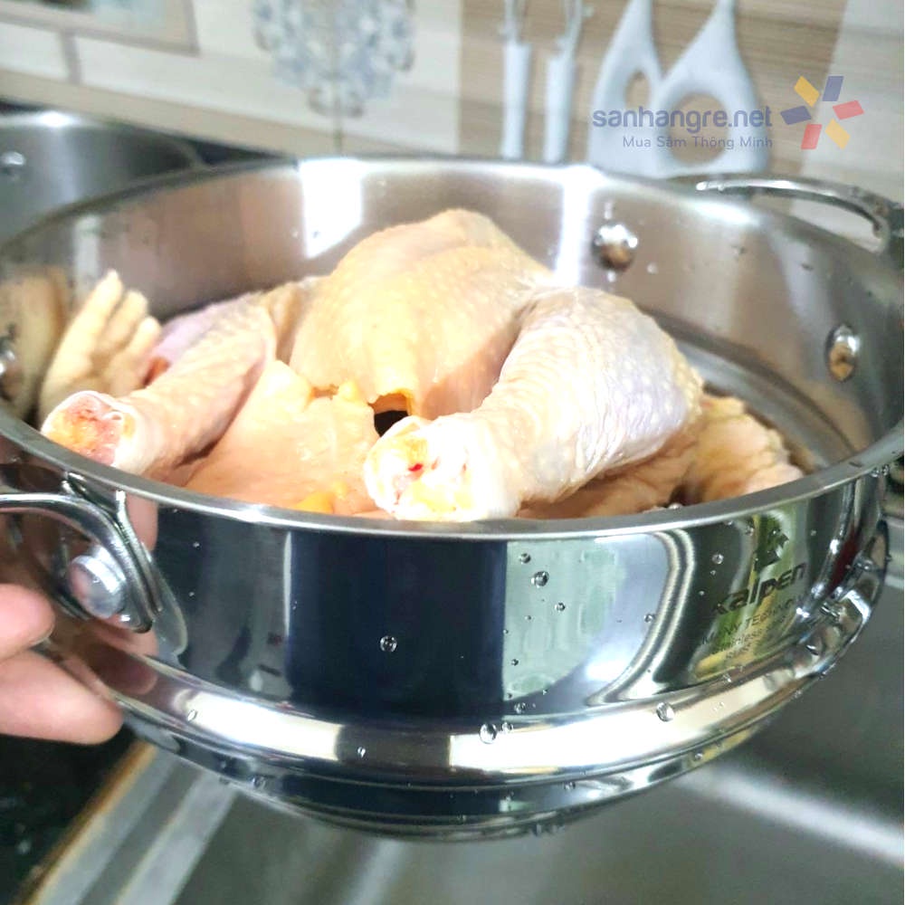 - Đáy Xửng hấp inox 304 thông minh kalpen có lổ thoát khí bé giúp bạn có thể đồ sôi hoặc hấp các loại hạt có kích thước bé một cách dễ dàng.