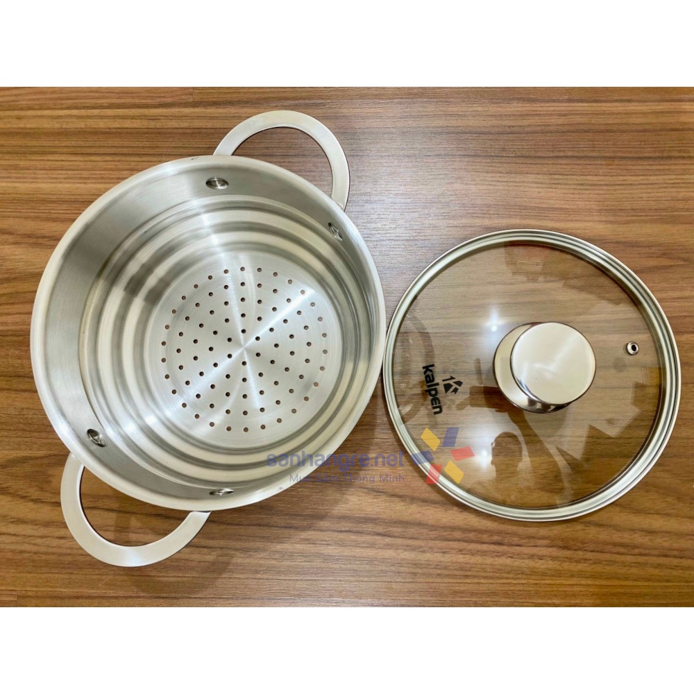 Xửng hấp Inox 304 thông minh 3 nấc 24-26-28cm Kalpen SSK-28 kèm vung kính