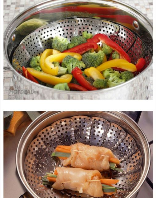 - Xửng hấp được thiết kế nhỏ gọn và tiện lợi giúp bạn dễ dàng chế biến nhiều món hấp giàu dinh dưỡng, tốt cho sức khỏe để cả gia đình thưởng thức.- Xửng hấp có những lớp inox mỏng được đục lỗ ghép với nhau theo hình xoắn ốc và có 3 chân ở phía dưới để đặt vào nồi nấu, nồi hấp có thể mở ra hết cỡ và thu lại gọn gàng khi không cần sử dụng.