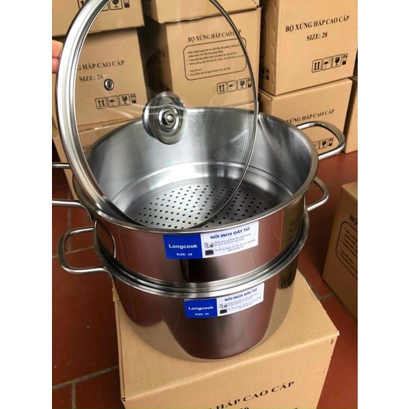 - Bộ nồi bao gồm: 1 nồi và 1 xửng hấp và nhièu kích cỡ cho khách lựa chọn