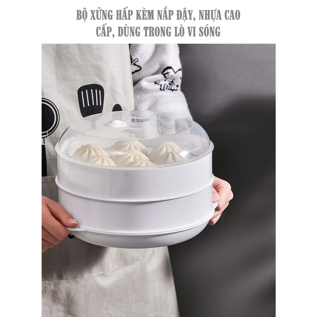 Tên sản phẩm: Xửng hấp kèm nắp đậy có thể dùng được cho lò vi sóng LE11Chất liệu : Nhựa PP an toàn