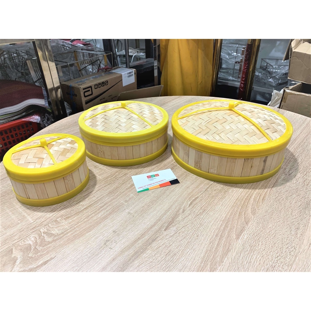 Xửng hấp tre (bộ có nắp) - hình tròn dùng để hấp dimsum, bánh bao - nhiều size