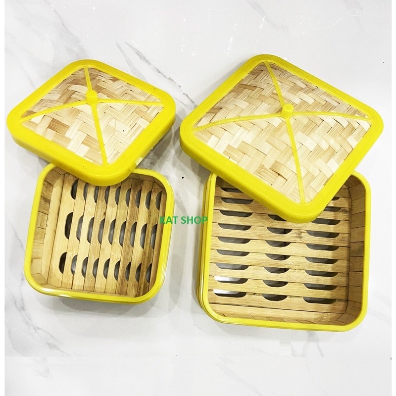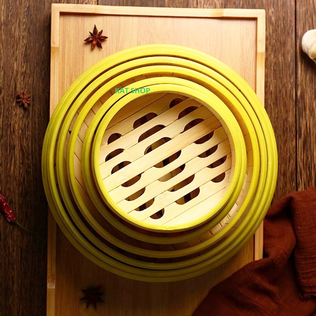 Xửng Tre Hấp Dimsum / Bánh bao / Xôi Đa Năng Vuông - Tròn, Có Nắp Đậy ( Size: 14/16/18/20/22/26cm )