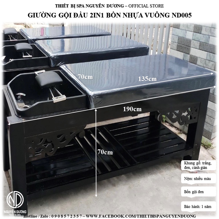 [XƯỞNG SẢN XUẤT] Giường Gội Đầu Dưỡng Sinh 2in1 Bồn Nhựa Vuông - Khung Gỗ - ND005