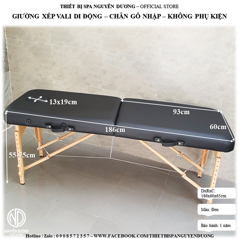 [Có sẵn] Giường Xếp Vali Phun Xăm Chân Gỗ - Spa, Nối Mi, Phun Xăm, Tatoo, Massage Trị Liệu