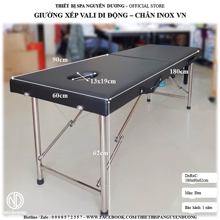 [Có Sẵn] Giường Xếp Vali Phun Xăm Chân Inox - Spa, Nối Mi, Phun Xăm, Tatoo, Massage Trị Liệu