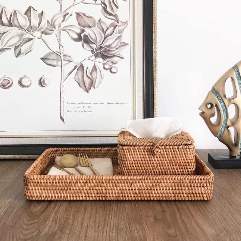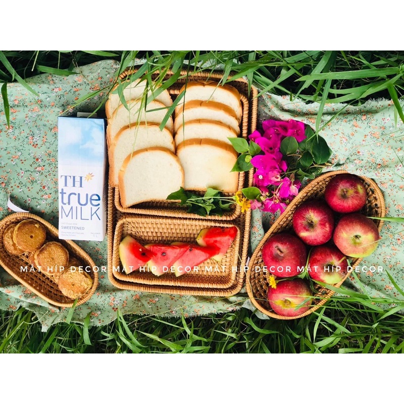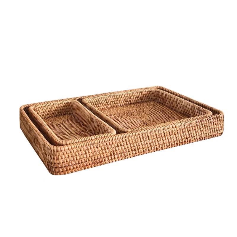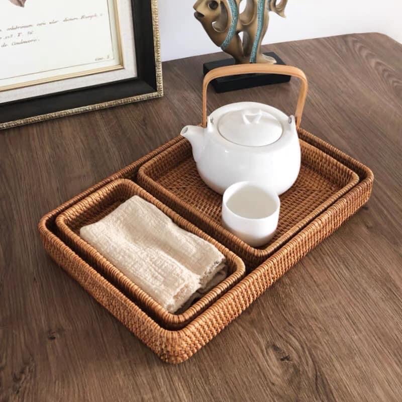 Nhà cửa & Đời sống > Bộ đồ bàn ăn > Khay, tấm lót bàn ăn || Xưởng SX có quà tặng-Bộ 3 khay mây chữ nhật Vintage dùng để đựng đĩa chén, hoa quả, bánh kẹo, decor chụp ảnh sản phẩmCòn hàng