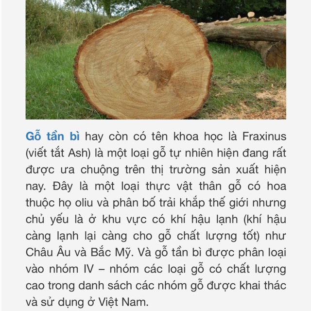 Ưu điểm của gỗ tần bì là vân gỗ đẹp, sáng, thịt gỗ rất chắc chắn. Gỗ tần bì thuộc nhóm nguyên liệu cao cấp trong lĩnh vực sản xuất nội thất của Việt Nam