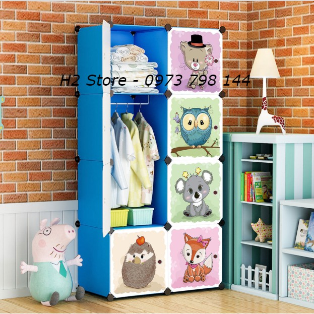 XƯỞNG TỦ NHƯA ĐỂ ĐỒ TREO ĐA NĂNG 8 Ô VÁCH XANH DƯƠNG CỬA CÚ THÔNG MINH CHO BÉ sâu 47cm