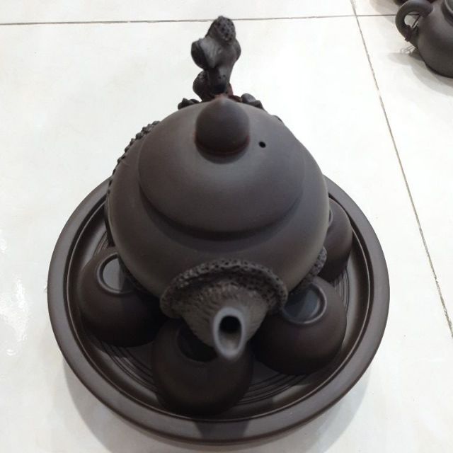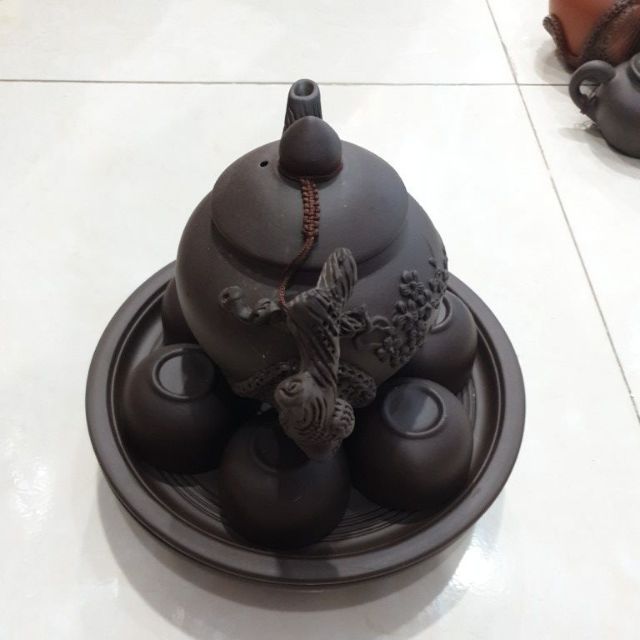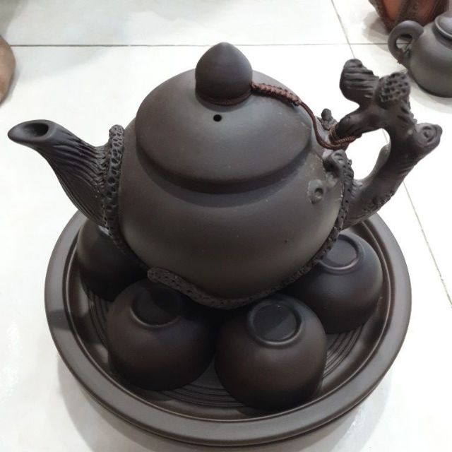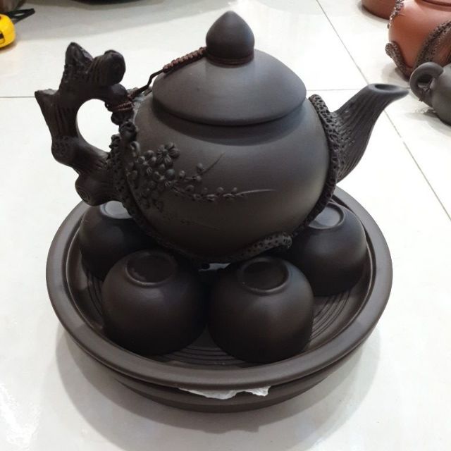 Giới thiệu Bộ xuyến chén đất đen bát tràng nắp nổi.
