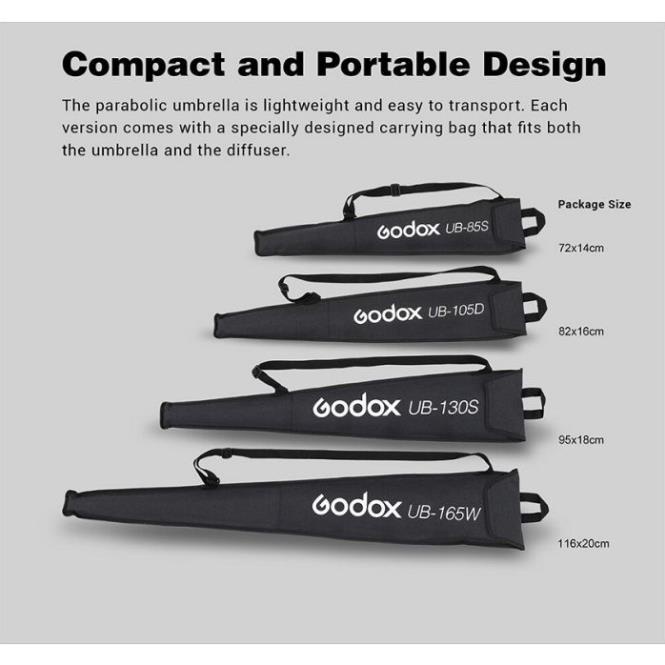 Giới thiệu Dù xuyên sáng Parabolic Godox UB-165D, UB-130D, UB-85D
