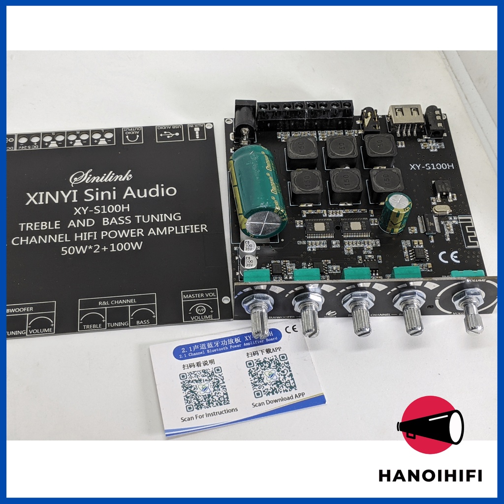 XY-S100H Mạch khuếch đại âm thanh 2.1 Sinilink 2.1 50w*2 + 100W Bluetooth 5.0 Chỉnh âm sắc. Nguồn DC 12-24 Volt. 4-8 ohm.Sinilink là một line hàng cao cấp của công ty làm mạch Xinyi ( các mạch XY anh em hay xài đó ạ).