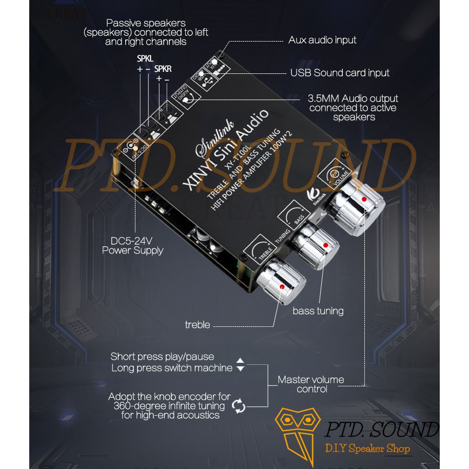 Giới thiệu XY-T100L Mạch khuếch đại âm thanh Sinilink 100w*2 Bluetooth 5.0 Chỉnh âm sắc từ PTD Sound mã Sinilink XY T100L