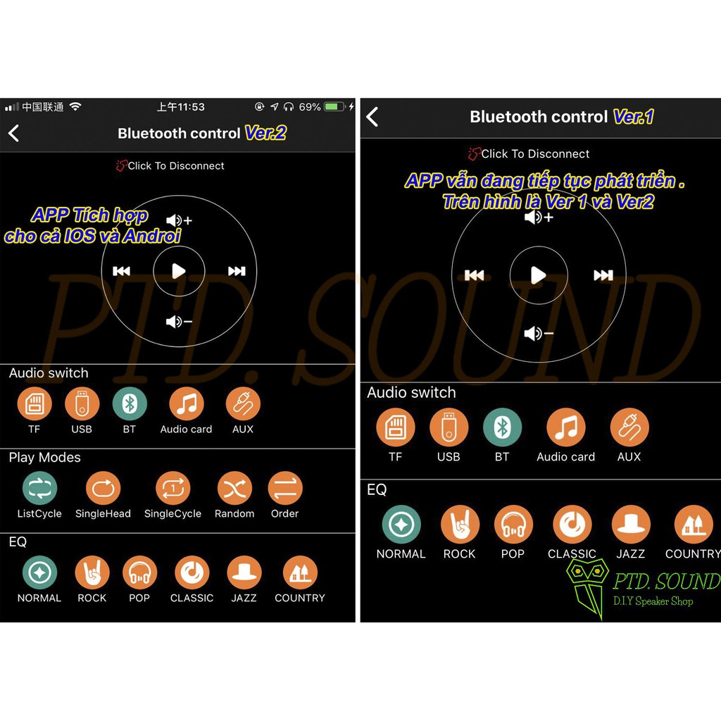 1. Kết nối app điện thoại để chỉnh EQ cho mạch, chỉnh các Mode, điều hướng bài nhạc, tăng giảm volum......