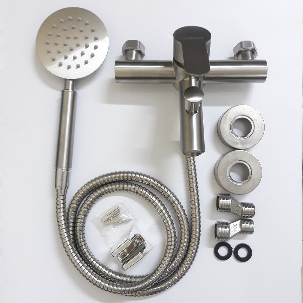 Bộ đầy đủ củ sen nóng lạnh inox và tay sen tắm tăng áp chất liệu inox 304 tròn dẹt cao cấp - đủ bộ củ sen+ tay+ dây+ cài