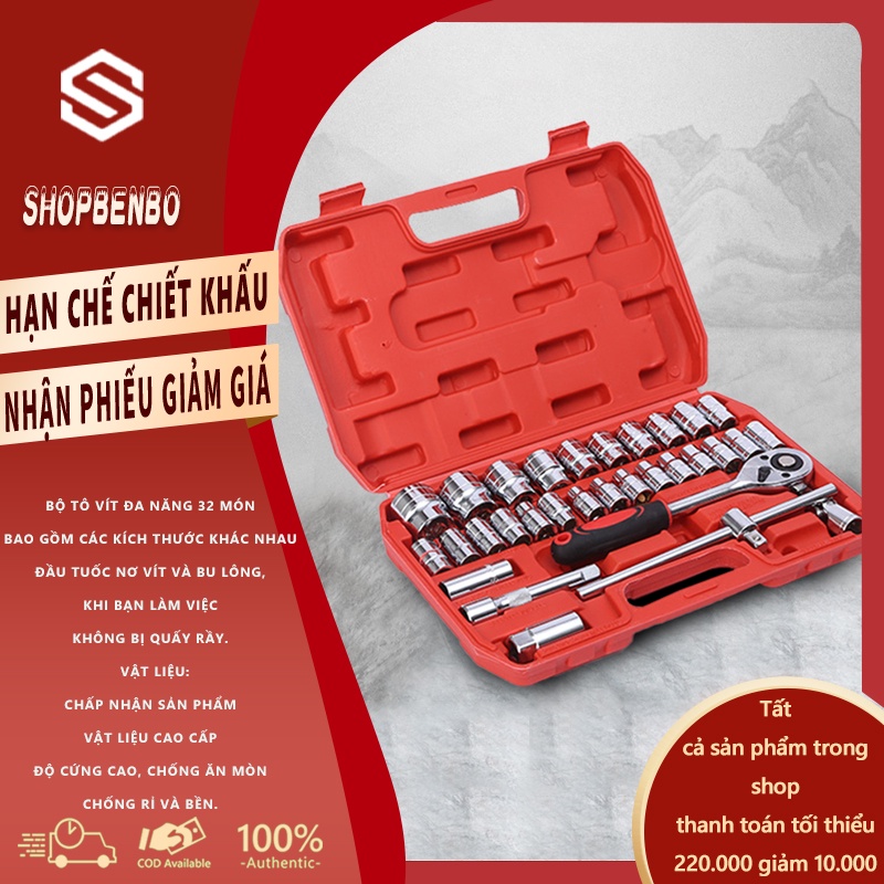 Nhà cửa & Đời sống > Dụng cụ & Thiết bị tiện ích > Dụng cụ > Hộp dụng cụ cầm tay || YB04 Bộ khẩu sửa chữa - Bộ dụng cụ 32 chi tiết mở bu lông ốc vít - sửa chữa ô tô xe máy đa năng shopbenboCòn hàng