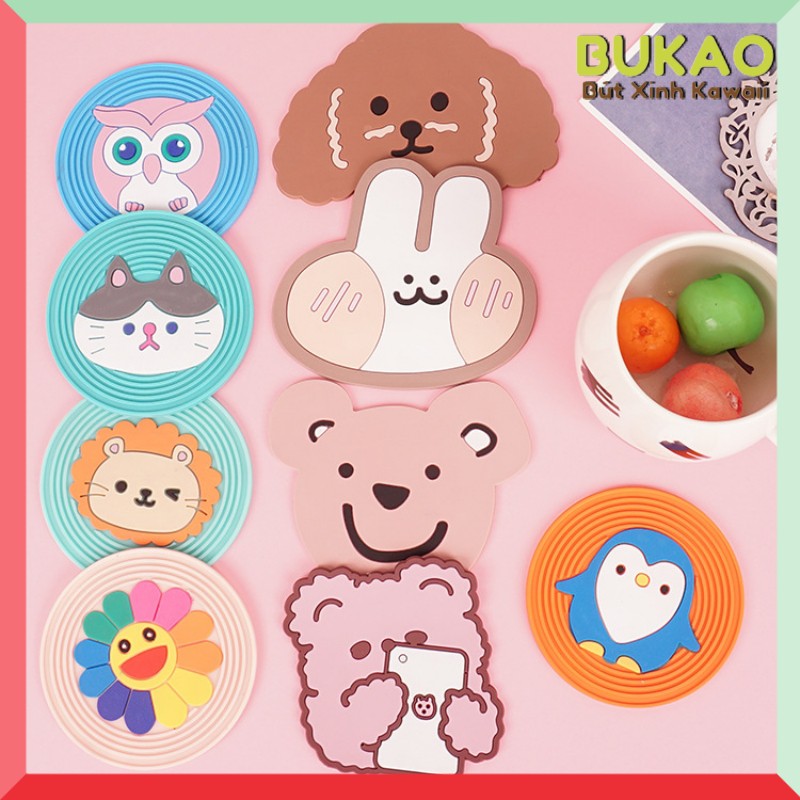 Z0363 Lót Ly Hoạt Hình Dễ Thương Mẫu Mới, Lót Chén Trà Trendy Quà Tặng Cute Chống Trơn, Chống Thấm Nước, Chống Ố Bukao