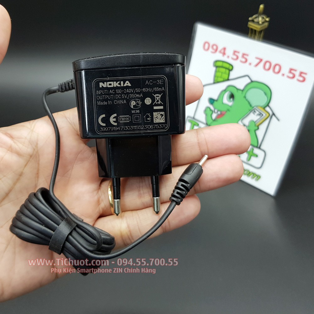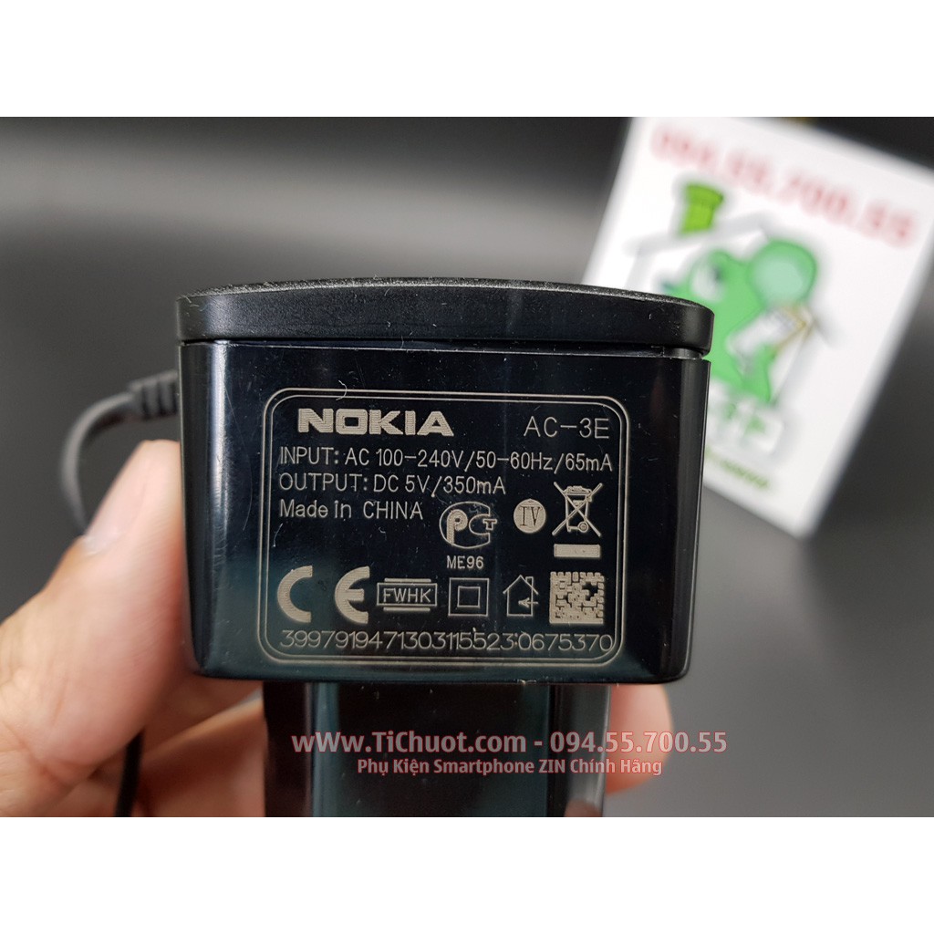 🚫 Hàng shop tự nhập khẩu (ZIN BÓC MÁY Xách Tay) ✈️. Bảo Hành: 3 Tháng 1 đổi 1 tại shop.⚡ Sạc nokia AC-3E công suất 5V-350ma Zin theo máy Chính Hãng, tương thích với máy Nokia chuôi sạc nhỏ (chân kim) các model sau :